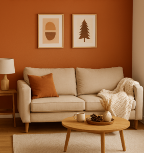 リビングやダイニングに暖色系を取り入れると、家族が集まる空間がより温かく感じられます。例えば、壁の一面だけをオレンジやテラコッタカラーにする「アクセントウォール」は、冬のインテリアにぴったりです。